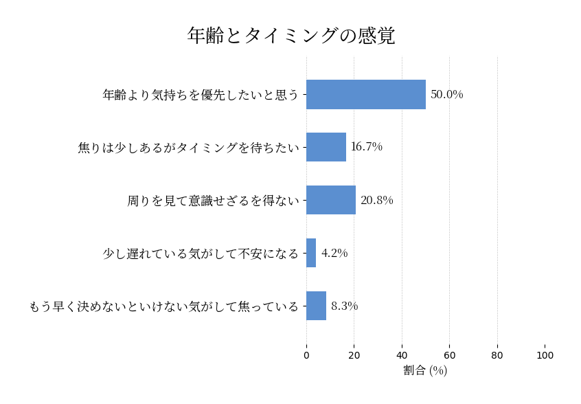 年齢って、気づいたら誰かの話題じゃなくて自分の単位になってるよな。「30までには」とか「そろそろ現実見ないと」とか、口では笑ってるけど、頭の中ではけっこう真剣に計算してる。結婚ってイベントより、締切に近い感じになってくる。