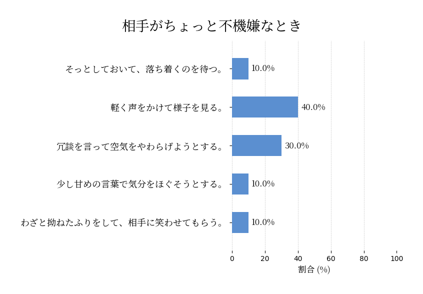 相手が不機嫌なときって、空気の密度が急に変わるよね。さっきまで普通に話してたのに、急に沈黙が重たくなる。そこでどう動くかが人間力の試験みたいなところがある。